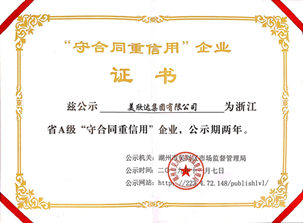美欣達(dá)集團(tuán)榮獲2019年浙江省A級"守合同重信用"企業(yè)